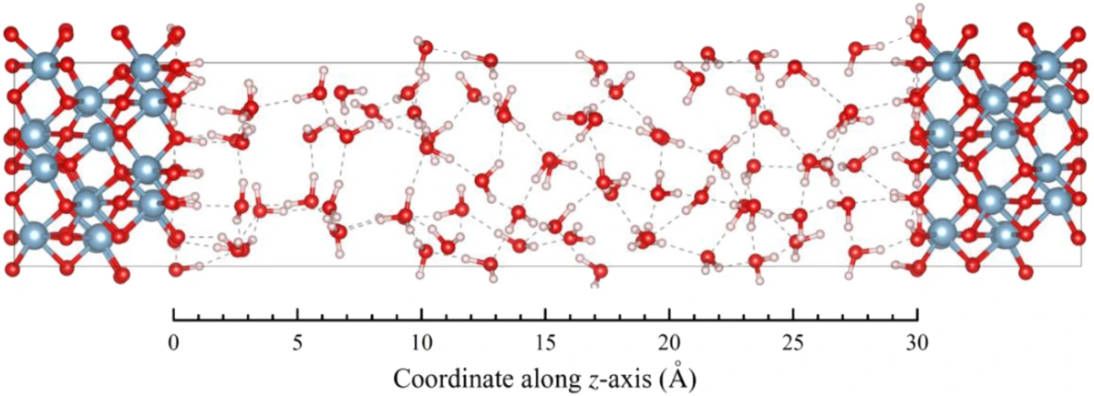 图1展示了用于模拟的α-Al2O3(0001)-水界面示意图。