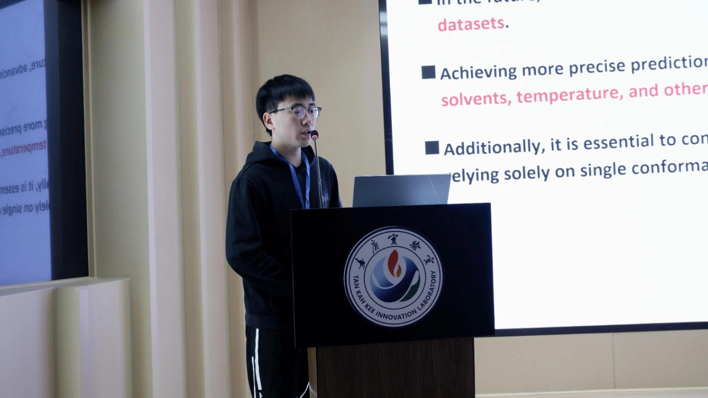 厦门大学徐凡杰同学在报告中介绍可用于NMR化学位移预测的深度学习框架NMRNet。通过预训练和微调策略,结合团队整理的综合基准测试数据集,在液态和固态NMR预测中均达到最优性能。