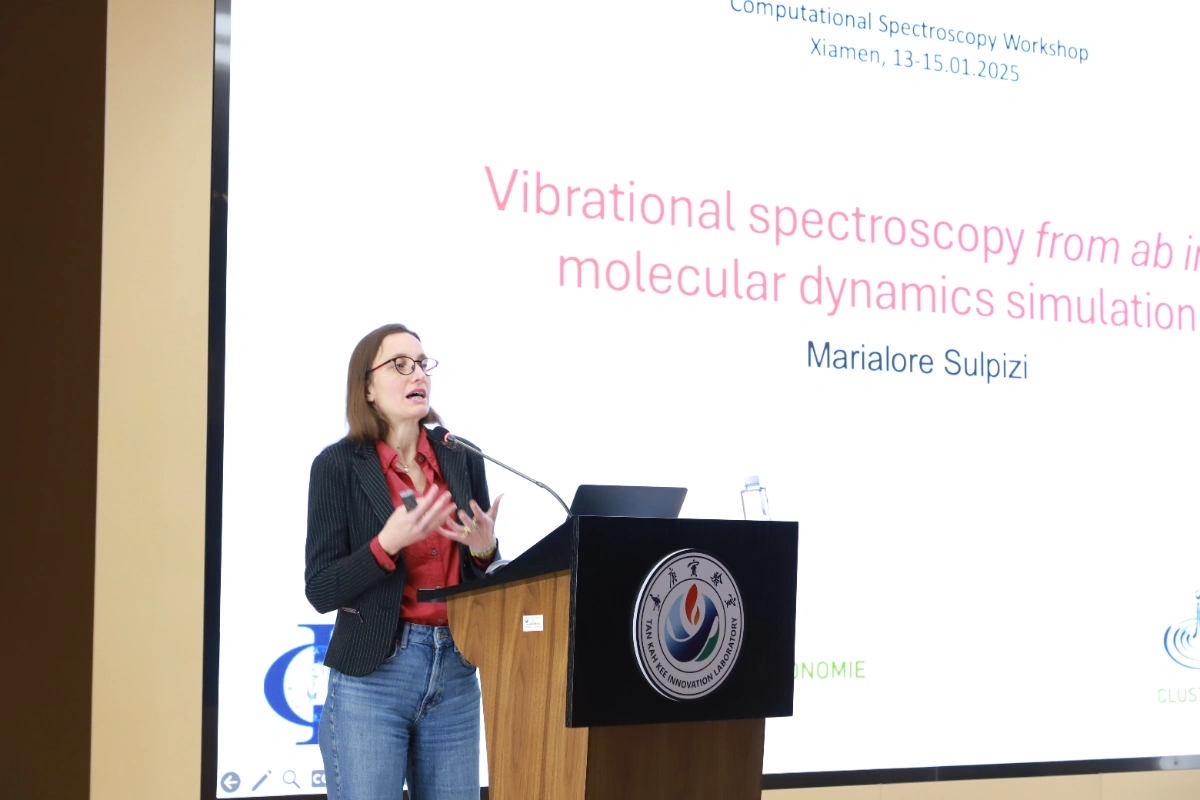 波鸿鲁尔大学的Marialore Sulpizi教授,以“Vibrational spectroscopy from ab initio molecular dynamics simulations”为题,深入浅出地介绍了基于从头算分子动力学计算振动光谱的理论基础,随后着重阐述了基于从头算和机器学习的计算光谱分析在研究如ATP - Zn离子和界面双电层等关键体系时所提供的独特见解与认知,让大家对这些重要领域有了全新的认识 。