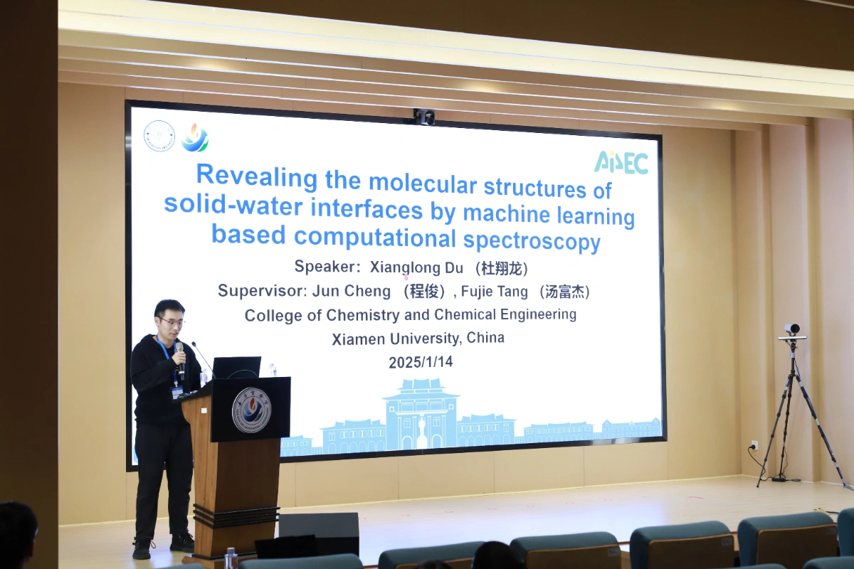 1月13月上午研讨会正式开始,由AI4EC Lab常务副主任、厦门大学化学化工学院程俊教授开幕致辞。程俊教授表示,结合理论计算与实验光谱学的计算谱学领域,正受到越来越多的关注与重视。随着AI发展,研究人员有望在工况环境下解决复杂体系的谱学问题。AI4EC Lab也将持续推动AI辅助计算谱学的理论与算法发展,与领域内专家共同探索复杂界面的谱构效关系解析。最后,程俊教授对远道而来的报告人与参会者表示感谢。